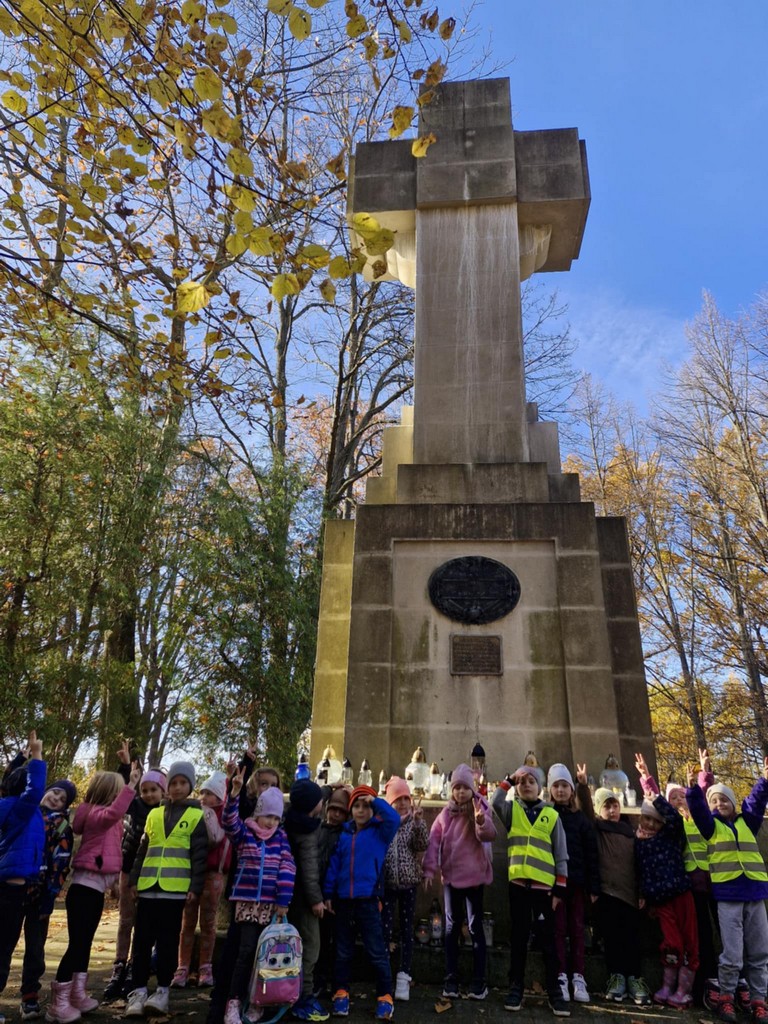 Już na miejscu dzieci wysłuchały tekstów umieszczonych na tablicach pamiątkowych oraz krótkiej historii związanej z Bitwą Gorlicką. Temat bardzo zainteresował dzieci, zadawały mnóstwo pytań. To była bardzo ważna lekcja wychowania obywatelskiego i patriotycznego, która pozostanie dzieciom w pamięci.