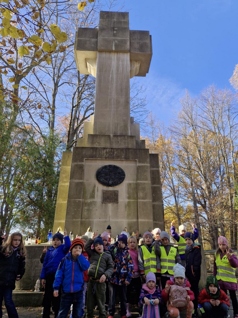 Tuż przed świętem zmarłych, dzieci z naszego przedszkola wraz ze swoimi paniami wybrały się na cmentarz wojskowy nr 91 na Górze Cmentarnej.