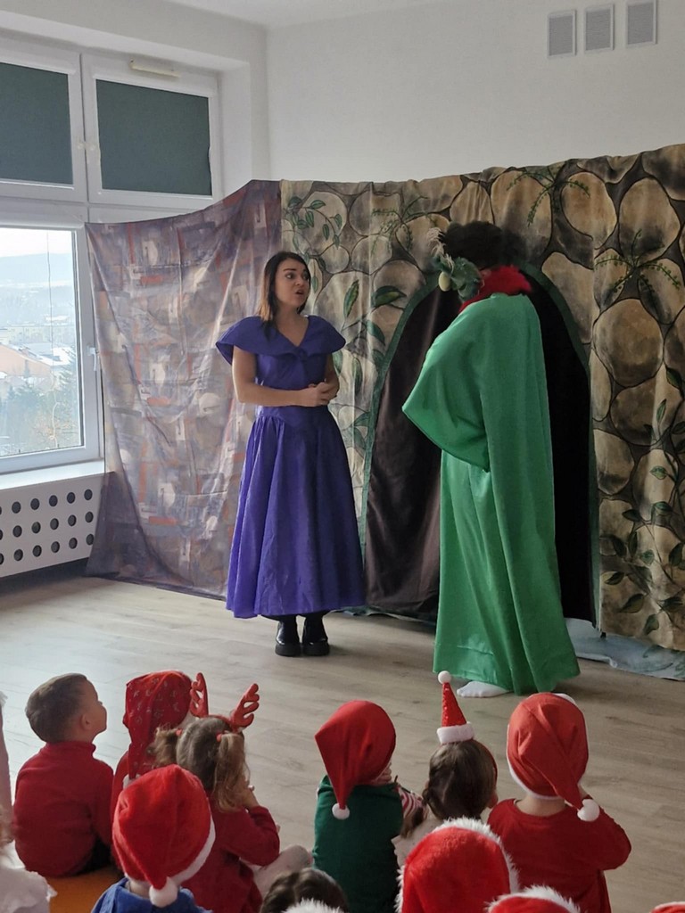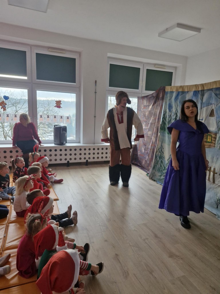 Wtorek drugiego grudnia był wyjątkowym dniem w Przedszkolu nr 8 w Gorlicach Dzieciaczki miały okazję zobaczyć przedstawienie z postaciami z *Krainy* *Lodu*. Istotą występu było pokazanie dzieciom, że w okresie świąt liczy się życzliwość i pomoc innym.