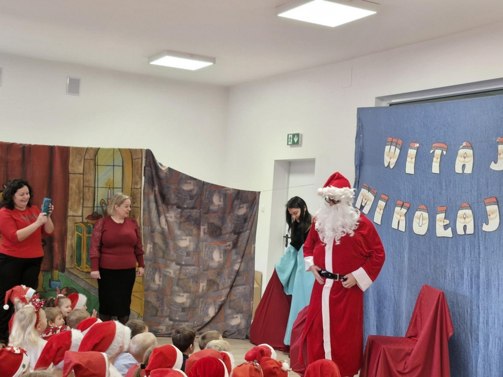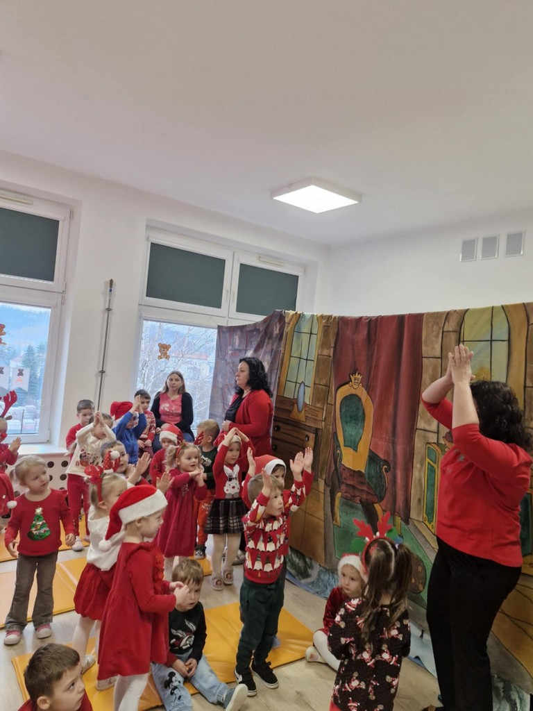 Następnie dzieci zaśpiewały piosenkę i wtedy pojawił się wyczekiwany przez przedszkolaki gość-*Święty Mikołaj*.