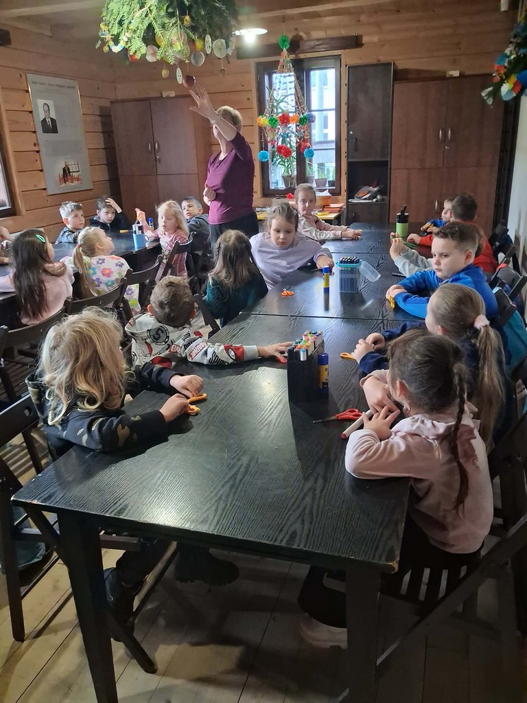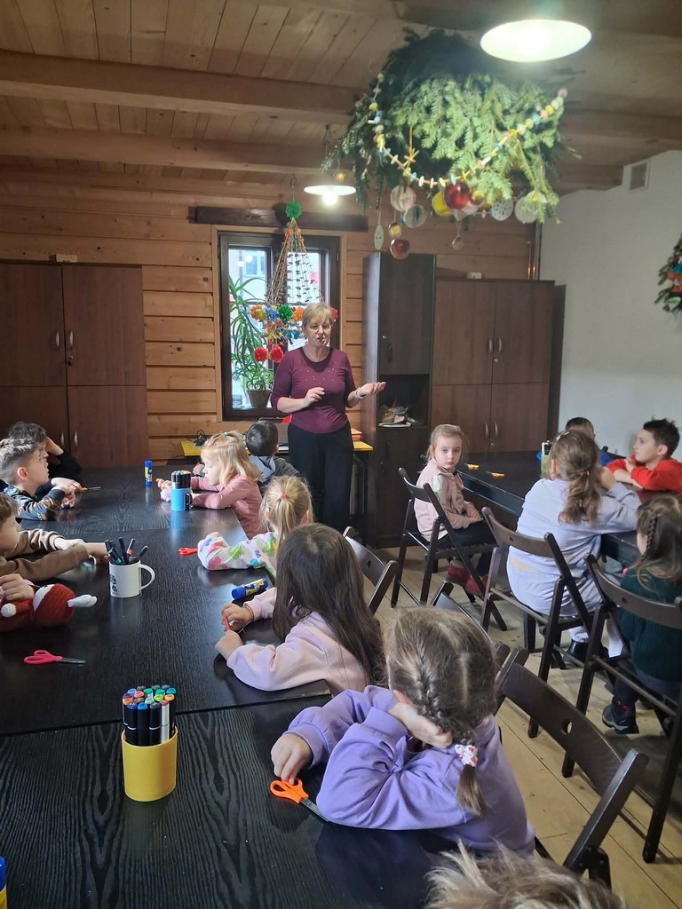 5 grudnia dzieci z grupy 2 pojechały do Szymbarku, do Skansenu Wsi Pogórzańskiej im. prof. R. Reinfussa na warsztaty ozdób bożonarodzeniowych. Spotkanie rozpoczęło się od pogadanki na temat dawnych tradycji związanych ze Świętami Bożego Narodzenia. Następnie dzieci zaczęły wykonywać ozdoby choinkowe wg słownych i poglądowych instrukcji Pań prowadzących. Zrobiły piękne, kolorowe ptaszki, zwierzątka z łupinki z orzecha oraz,, świat" ozdobę z opłatków, która sprawiła im najwięcej frajdy. Był też czas na zjedzenie pysznych przekąsek, a także na zwiedzanie zagrody. Dopisała piękna pogoda i towarzyszyły nam dobre humory. Z miłą chęcią tam jeszcze wrócimy!
