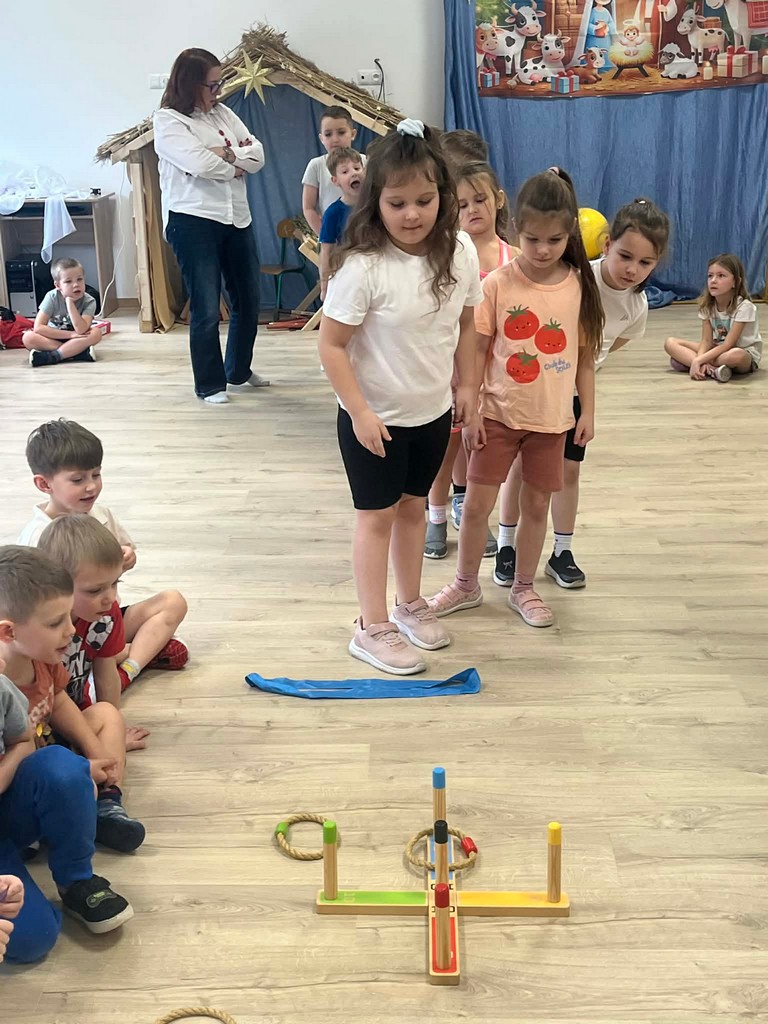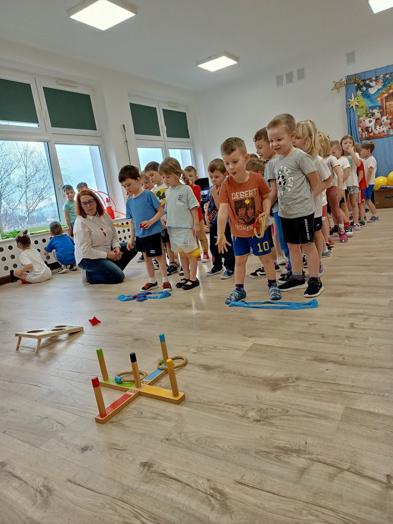 W ramach działań profilaktyczne- edukacyjnych w naszym przedszkolu odbyły się Mikołajkowe zawody sportowe. Przedszkolaki wzięły udział w różnych zabawach i konkurencjach sportowych: rzuty ringiem, kręcenie hula- hopem, skoki na skakance, chodzenie z woreczkiem na głowie. Na zakończenie zwycięzcy otrzymali atrakcyjne nagrody ufundowane przez Urząd Miasta Gorlice Wydział Spraw Społecznych.
