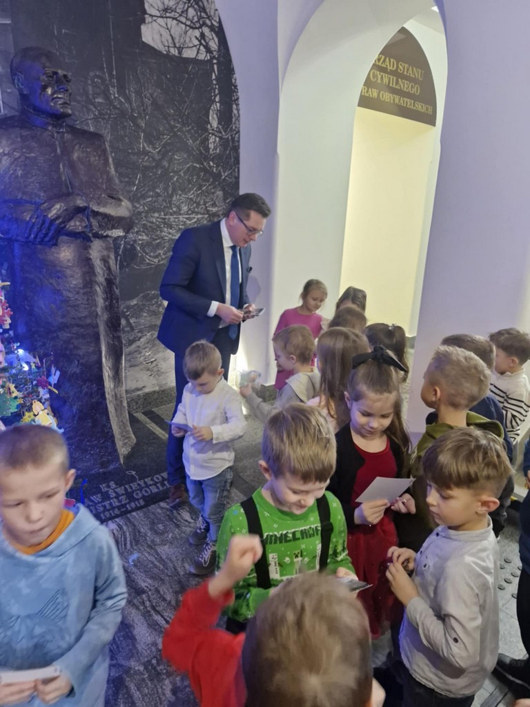W dniu 17 grudnia przedszkolaki z grupy 5,6 latków zostały zaproszone do Urzędu Miasta, aby własnoręcznie przygotowanymi ozdobami, wsiąść udział w wspólnym ubieraniu choinki. Efekt końcowy wyszedł przepięknie i bajecznie. Sami zobaczcie.