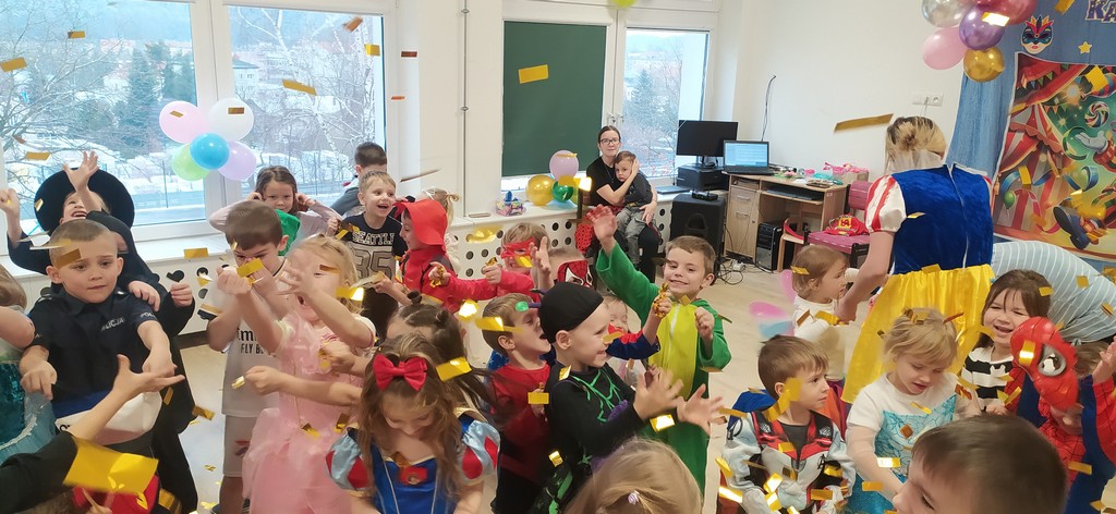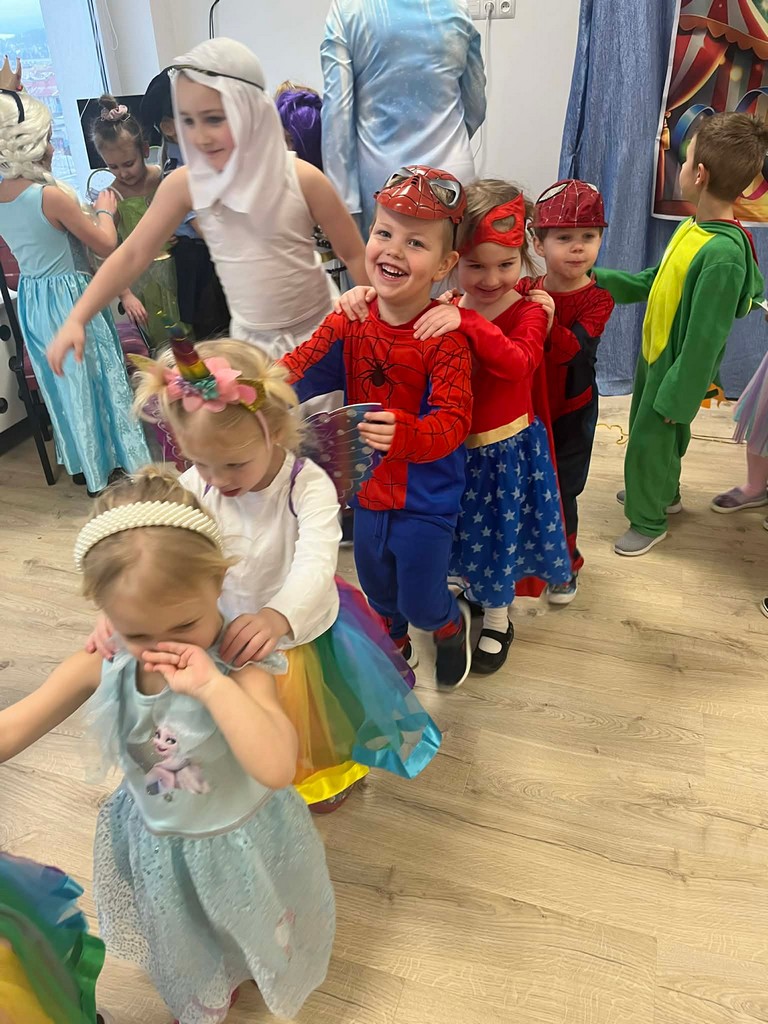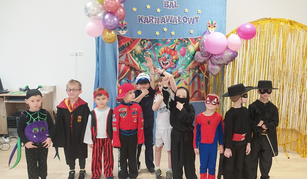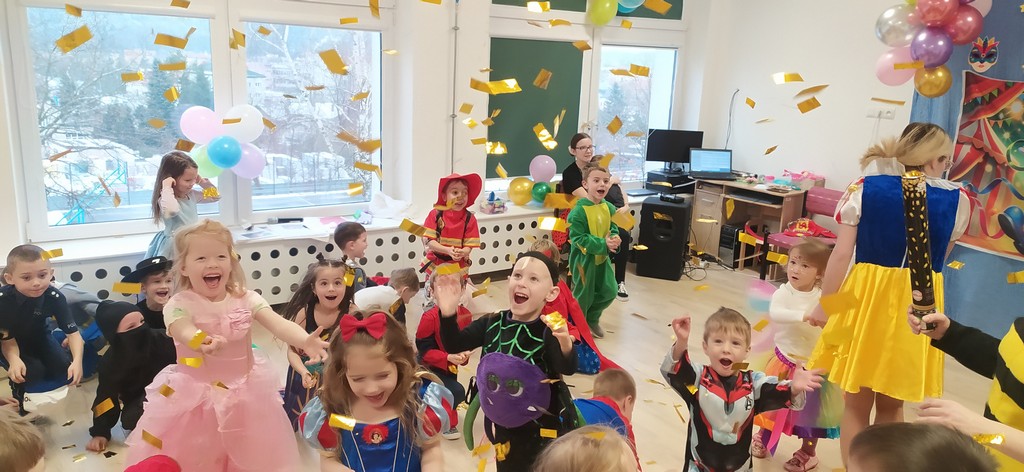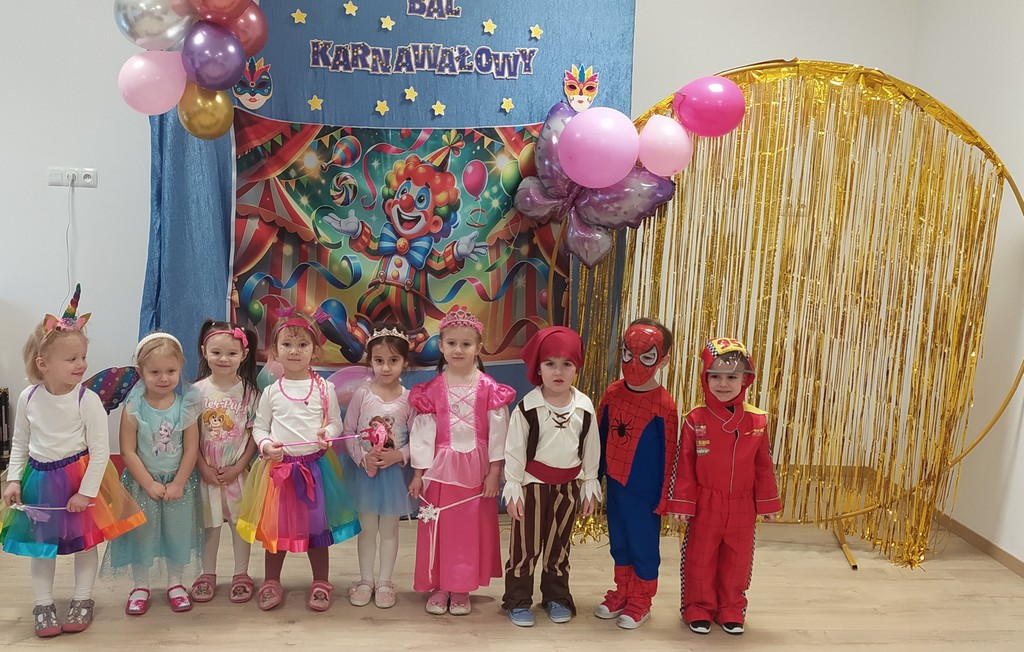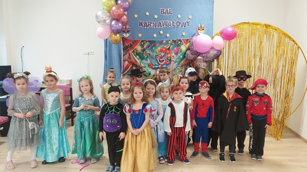 30 stycznia w naszym przedszkolu odbył się bal karnawałowy. Dzieci wcieliły się w różne postacie bajkowe. Zamieniły się w królewny, księżniczki, wróżki, biedronki, spidermanów, piratów, strażaków czy policjantów. Przebierańcy świetnie bawili się, uczestnicząc we wspólnych zabawach, a skoczna i rytmiczna muzyka zachęcała do tańca. Wszystkim zabawom towarzyszył śmiech, radość i spontaniczna aktywność dzieci, a cały bal karnawałowy przebiegał w miłej, serdecznej atmosferze i dostarczył niezapomnianych wrażeń. W trakcie karnawałowych szaleństw był czas na  słodką przekąskę, jak również na pamiątkowe zdjęcia.