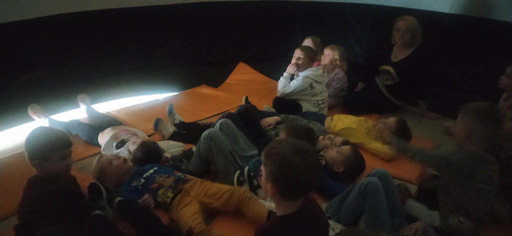Seans w kinie sferycznym dostarczył dzieciom wielu emocji i nowych doświadczeń.