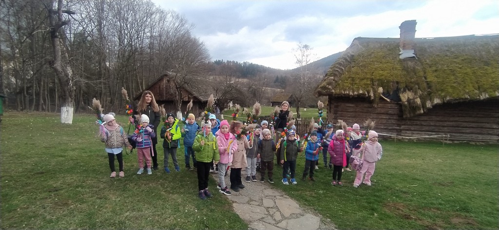 Z okazji nadchodzących Świąt Wielkanocnych przedszkolaki z grupy 5,6 latków wybrały się do Skansenu Wsi Pogórzańskiej w Szymbarku na warsztaty wyrobu palm wielkanocnych. Celem zajęć było przybliżenie tradycji Świąt Wielkanocnych, doskonalenie umiejętności współpracy, rozwijanie poczucia estetyzmu i rozbudzanie wyobraźni. Podczas warsztatów każdy uczestnik wykonał tradycyjną palmę wielkanocną z bukszpanu, trzciny, gałązek bazi oraz kwiatów. Na zajęciach panowała miła, radosna atmosfera. Po warsztatach przedszkolaki zwiedzili skansen oraz obejrzeli tradycyjne marzanny, które brały udział w konkursie „Małopolska Marzanna”.